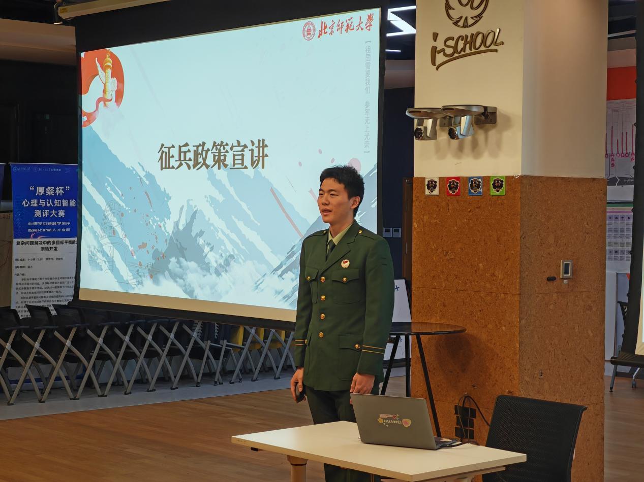 随后,魏梓豪同学为同学们详细介绍了征兵的时间、应征条件及相关注意事项,为同学们提供了清晰的应征指引。随后,魏梓豪同学也详细解读了应征入伍可享受的经济优待、升学政策和就业留京等优待政策,帮助同学们全面掌握应征政策要点。