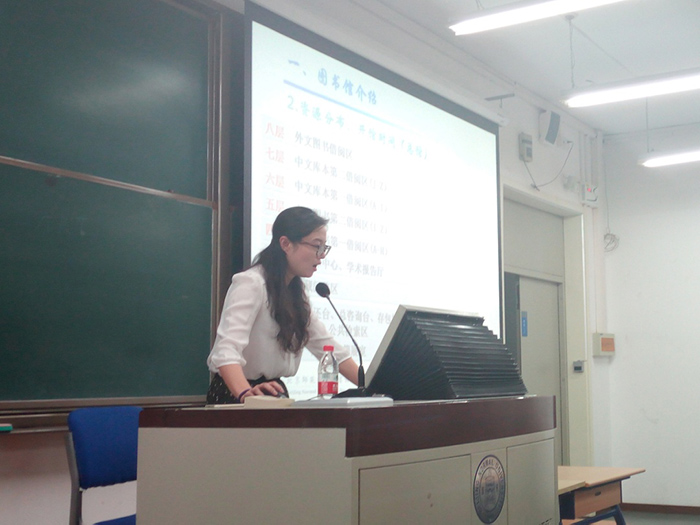 2016年9月8日晚,98色花堂 图书馆赵敏老师应心理学院邀请,在教四306教室进行了主题为“如何有效利用图书馆资源”的讲座。讲座内容分为图书馆介绍、印本资源检索方法、常用电子资源汇总、木铎搜索、图书馆服务五个部分。当晚,60余名MAP新生参与了讲座,同学们也与赵老师进行了许多互动和交流。