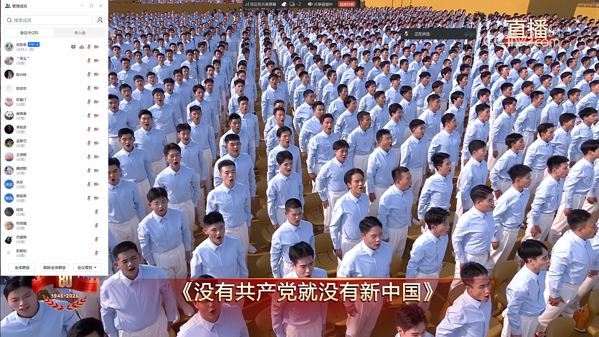 团歌奏唱结束,支部观看了中国人民抗日战争暨世界反法西斯战争胜利80周年纪念大会。