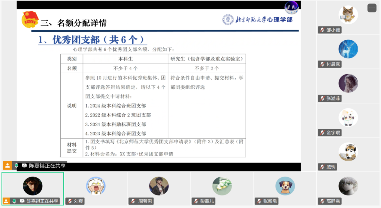 随后,组织部部长陈嘉祺详细阐述了本次评选工作的整体概述、原则和要求。评选工作将依据相关办法,坚持公开、公正、公平、择优的原则进行。 在评选要求方面,大会明确了优秀团支部的核心标准,包括班子建设、团员管理、活动开展、制度落实以及作用发挥等多个方面。