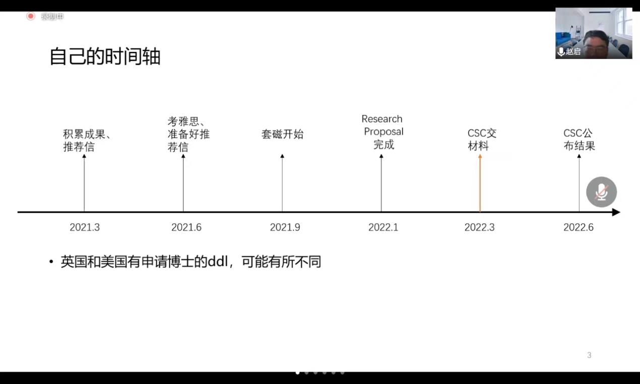 接下来,赵启师兄与同学们分享了自己申请博士时所做的准备以及相应的时间安排,并帮助同学们了解了一些相关的国外申请项目,对同学们事先提出的申请博士相关的问题进行了耐心的解答。