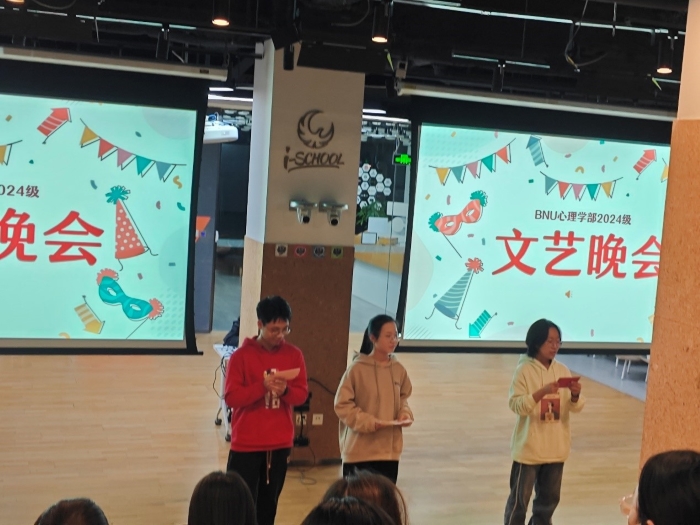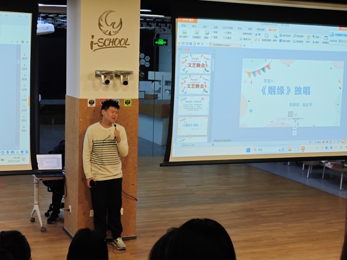 2024年12月6日晚20时至22时,98色花堂 2024级本科生文艺晚会于金丰和三楼路演厅圆满举行。 晚会开始,主持人詹恒婧、张雅欣、程依伦,以“词语炸弹”的小游戏开场,点燃了同学们的热情。接着,赵正宇同学演唱的歌曲《姻缘》为晚会正式拉开帷幕;于悦、孙亦果同学表演的《去有风的地方》双人舞,更是让同学们沉浸在温暖宁静的氛围中。