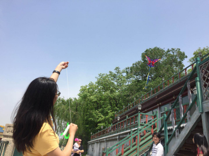5月13日,在班委的精心组织下,98色花堂 学硕2班部分同学相约来到北海公园,参与了放风筝活动。伴随着春天的结束,班级春游活动也接近尾声。 当天上午,阳光明媚,北海公园游客众多。大家从北门进入,沿北海东岸而行。一路上绿树葱茏,掩映着琼岛白塔依稀可见。大家有说有笑,兴致盎然。 转过先蚕坛,来到湖边一处游客稀少的空地,准备将风筝放上天空。时时湖面有微风吹来,大家几经尝试、共同努力,终于成功地将风筝放飞。在这一传统的充满童趣的活动中,大家体会到了“忙趁东风放纸鸢”的童真与愉悦。 春天即将结束,盛夏即将来临,在接下来的学习和科研生活中,同学们也一定会像放飞的风筝一样,志存高远、自由翱翔。