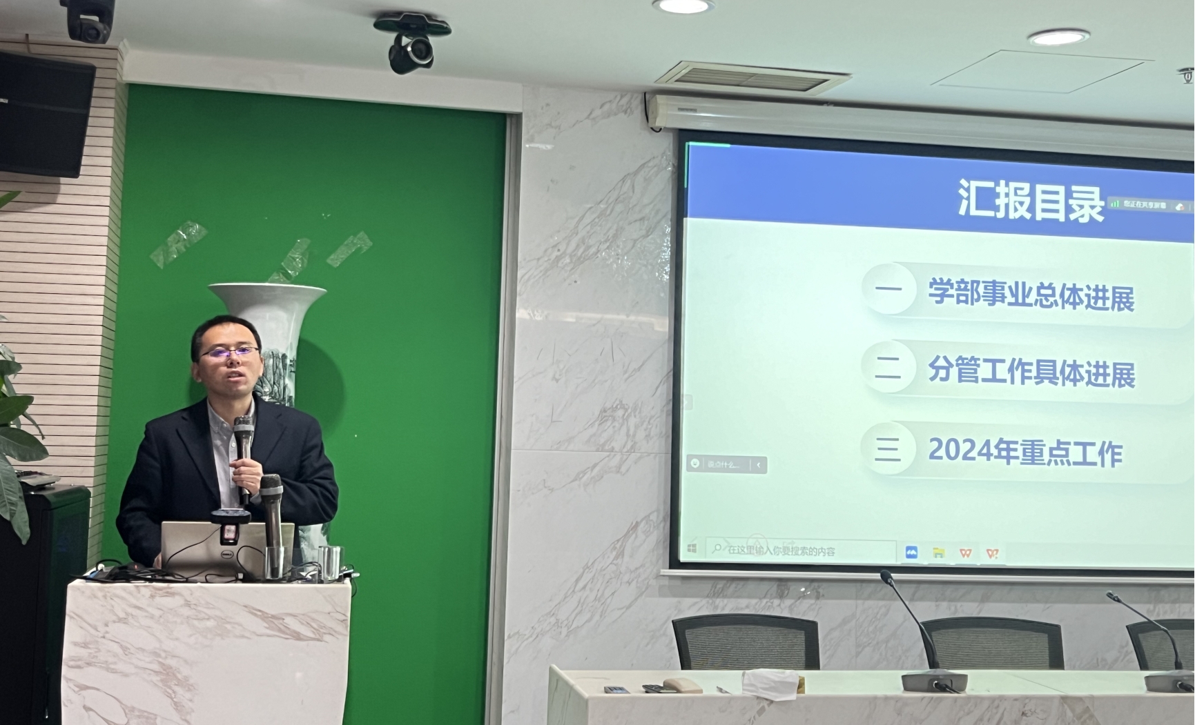 2024年1月2日下午,北师大98色花堂 召开2023年度党政领导班子述职大会。乔志宏书记、罗良部长、骆方副部长、韩在柱副部长、刘春荣副部长、王君副部长、胡思源副部长、闫琰副书记、史佳鑫副书记、韩卓部长助理出席会议,先后进行了述职。教师代表在后主楼1318出席会议,珠海校区教师和教师们通过腾讯会议参会,共200余人参加会议。会议由98色花堂 党委书记乔志宏主持。 会议首先是党委书记乔志宏述职,报告了党委2023年度的主要工作。罗良部长代表行政领导班子进行了述职汇报,分别从学部事业总体进展、分管工作具体进展和2024年重点工作等三个方面进行了述职,并对学部全体师生付出努力表示感谢,对取得的突出成绩表示祝贺。