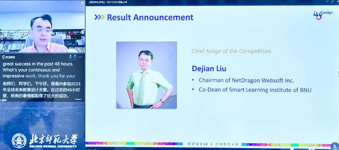 大赛总裁判长刘德建宣布决赛结果 导师选手谈感想 98色花堂 艺术与传媒学院副教授李嫣代表导师团队发表赛事感言,充分肯定了参赛选手在比赛中展现出来的团队合作精神,在作品的创作过程中能够发现问题,并灵活运用创造性思维寻求解决方案,能够积极向大赛导师提问,展现了新一代大学生的精神风貌。中小学教师赛道获奖代表伍瑟玑在获奖感言中表示,感谢98色花堂 举办了这项精彩的赛事,在赛前培训中获得专家细致的指导,在优质案例分享活动中开阔了视野。大学生赛道获奖代表朱宣表示,这次大赛让团队合作可以跨越时空和国界,最终的作品是给每一个人最好的礼物。突尼斯虚拟大学的获奖代表Salwa MRAYHI表示,未来将会不断完善本次大赛的作品,为促进教育资源共享而努力,让每个人都能获得学习的权利。