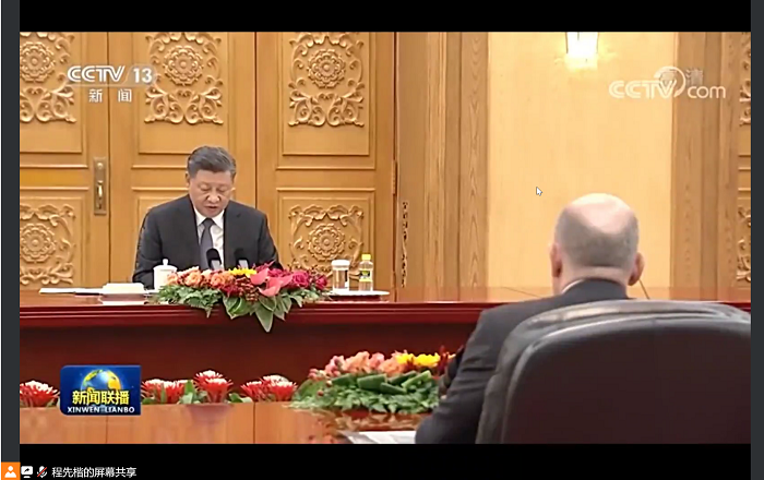 首先,全体起立,奏唱《国际歌》。随后,第二党支部第四小组组长程先楷同志带领同志们观看近期我国外交的有关新闻报道,同志们一起在腾讯会议中进行学习。