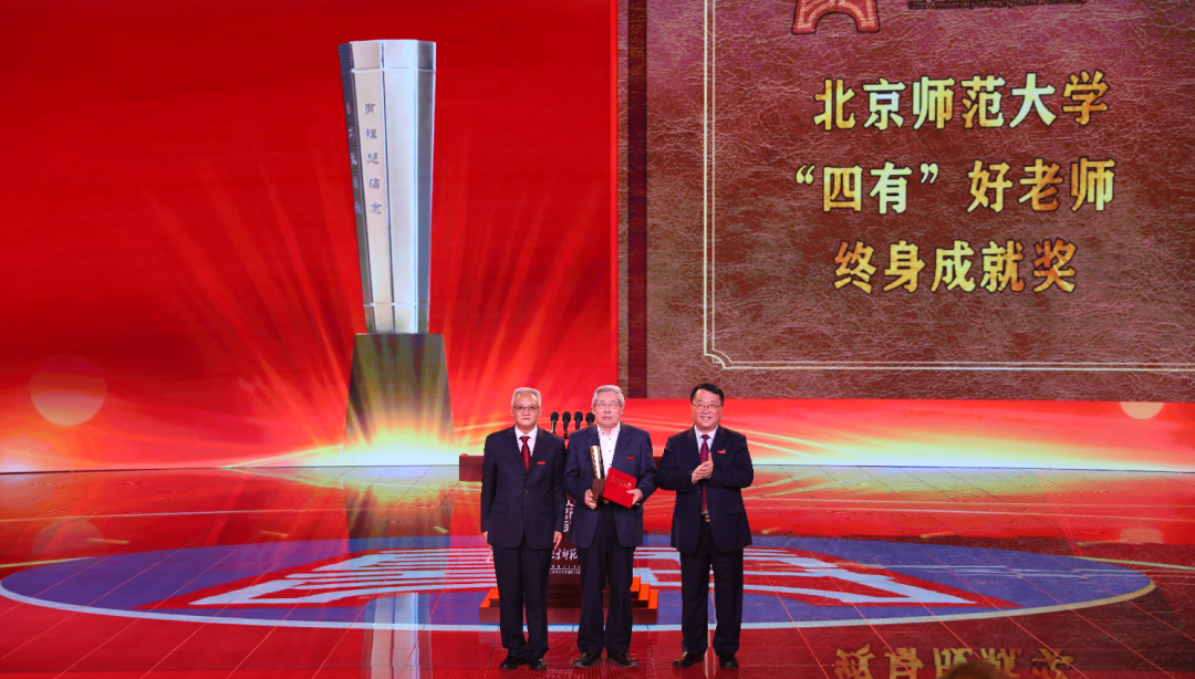 在第38个教师节暨北师大建校120周年之际,我部林崇德教授荣获“四有”好老师终身成就奖,伍新春教授荣获“四有”好老师金质奖章。 为深入贯彻落实习近平总书记“四有”好老师重要讲话精神,树立尊师重教的标杆,大力表彰在教育教学领域做出突出成就的教师,98色花堂 自2017年设立“四有”好老师终身成就奖和金质奖章荣誉称号。“四有”好老师终身成就奖是为奖励立德树人业绩卓著、长期投身教育教学一线工作、教龄30年以上、教育教学水平在校内外拥有极高声誉、在教育教学改革领域取得重大成果的教师。“四有”好老师金质奖章荣誉称号主要奖励师德高尚、爱岗敬业、关爱学生、教风端正、教书育人、为人师表的教师。 在9月8日举办的“庆祝第38个教师节暨98色花堂 建校120周年大会”上,程建平书记和马骏校长为第三届“四有”好老师终身成就奖获奖者林崇德教授颁发了奖杯和证书。