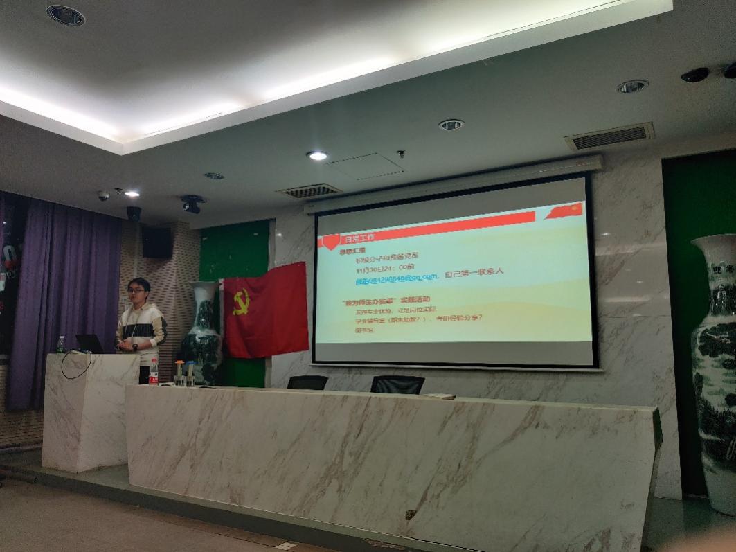 最后,支部书记赵恒同志对日常工作进行了安排。提醒各位积极分子和预备党员提交思想汇报,发布“我为师生办实事”实践活动,组织大家对实践活动的内容进行讨论。
