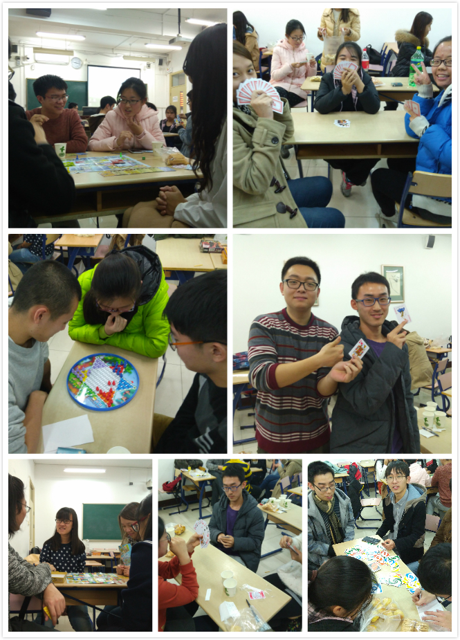12月17日晚8点,心理学院13级本科3班在教二104成功举办了第二届棋类游戏的比赛活动。 去年12月中旬,由13级本科3班举办的“棋开得胜”棋艺大赛受到了全年级同学的欢迎,不少同学表示期待有第二届的比赛,因此这项棋艺游戏活动在一年后如期而至。今年的“更胜一棋”与去年的“棋开得胜”相比,新增了集体竞技环节。到场的同学每三人一组进行了统一的“斗地主”挑战赛,由各组的获胜者继续竞技争夺冠军,其余同学则自由参与到其他棋牌游戏中。最终,李昌锦同学获得了斗地主大赛的冠军,由主持人张岂铭为其送上奖品。 本次棋类比赛活动取得了良好的效果,同学们还意犹未尽地期待明年的第三届比赛,可见该活动已成为大家在12月中的美好回忆。棋牌类游戏与体育运动一样有调节身心的作用,同学们通过棋牌类的竞技游戏,一定程度地释放了期末阶段的课程与作业压力,同时加强了同学间的交流、增进了友谊,以新的面貌投入到接下来的学习和生活中。 (心理学院13级本科3班 郭名扬供稿、供图) |