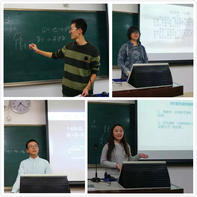 2016年10月30日晚19:00,未来教师素质大赛心理学院分赛于教二109圆满举办。到场的评委有:98色花堂 第十七届研究生支教团成员,校第十三届、十五届未教赛决赛选手王帅鸣,校第十五届未教赛决赛选手孙雨雯,未来教育家协会社长,全国大学生与研究生物理教学技能展评二等奖获得者,校第十六届未教赛半决赛选手谢晓雨。 一号选手刘思燚严谨科学地讲述了化学实验的原理,板书工整,思路清晰;二号侯森宝巧妙引题,深入浅出,并穿插提问,加深理解;三号徐敏别开生面,以讲述故事的形式为大家讲授一堂妙趣横生的化学课;四号宋子豪用画图形式的板书启发学生产生共鸣,并引用科学家的故事,表达清晰流畅;五号路宇轩讲授《卜算子(缺月挂疏桐)》,通过朗诵、解释词义、赏析词句等方式,表达准确,情感真挚,富有感染力;六号选手方圆以随堂检测题的形式引出了教授主题——伴性遗传,选手语言生动、有力,感染力强,很好地活跃了课堂气氛;七号选手张涵宇通过实验推理教授关于降低化学反应活化能的酶的实验,思路清晰,表达干练,课堂严谨;八号选手张雨璇通过充分准备,PPT简洁美观,内容充实,并通过朗诵、解释各句词义、分析情境,带领大家对词进行赏析。 对于选手们的表现,评委们给予了充分肯定,同时也提出了自己的看法和建议。最后,方圆荣获一等奖,张雨璇、侯森宝荣获二等奖,刘思燚、徐敏、宋子豪荣获三等奖。本场比赛中,选手们态度认真,表现优秀。他们在靠近未来理想的道路上,已经迈进了坚实的一步。 比赛结束后,评委选手与全体工作人员合影留念,本次比赛圆满落幕。