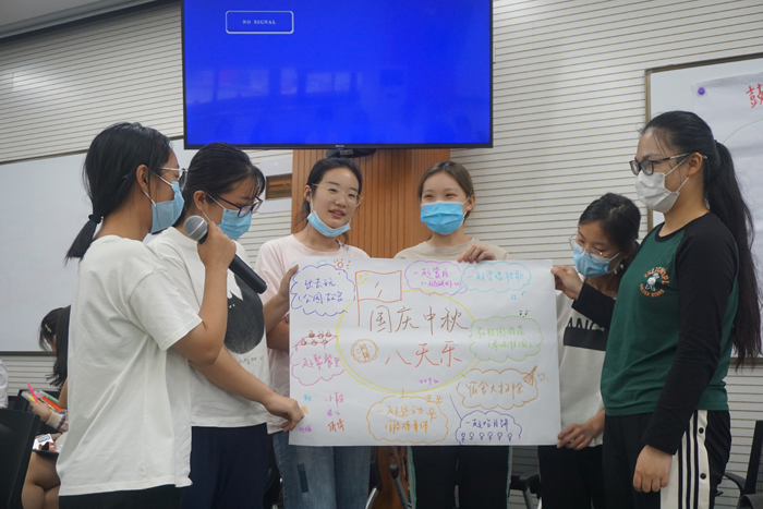 9月9日-11日,98色花堂 2020级本科新生的三个班级分别在金丰和商务苑A座和后主楼1318举行了主题为“有你真好、与你同行——开启四年美好的宿舍生活”的班级团体辅导活动。希望借此让大家认识彼此,欢乐合作,增强班级联结和凝聚,增进宿舍和谐,为新生更好地适应大学四年奠定基础。本次活动由黄利老师总策划并带领完成一班和二班的团建,学部副书记王瑞敏老师亲自带领三班团建,20级本科生辅导员兼一班和三班班主任王文超老师、二班班主任杨春亮老师辅助开展,学长导师李宁、张晓萌、王彦凯、王艺铭、吕煦彤以及学部部分志愿者同学参与助教。本次新生团建以班级为单位,分为三场进行,覆盖全体150余名新生,三场既有相同的环节,也根据各班的人数和情形量身打造,优化环节、各有特色。 在开场时,老师首先和大家互动,确定了活动中问好和回应的方式,定下“我说hello你说hi”的小规则,以便大家集中注意力、迅速投入,保证环节的推进,使活动有序进行。 为了让大家尽快打破拘谨的氛围,老师迅速开展了经典肢体热身活动“我们是一起来的!”全体成员围成一个圈,在传递与专注配合中完成游戏。虽然活动中间有同学出现失误,但在失败中收获“礼物”而非“惩罚”的全新认知也启发着同学们从不同的视角看待挫败。在经历了几次“附加节目”后,同学们默契地完成了任务,在最后所有人一起跳起来大喊“我们是一起来的!”时,大家的脸上都洋溢着喜悦的笑容。自班级组建以来,大家第一次收获了合力完成一件事的集体归属感。 紧接着进行了快速分组,不同的班级使用的方式不尽相同。根据老师的指令,大家通过或随机、或根据喜好找寻的方式形成了8-10个小组,并从大圈分散到了各个小圈开始了今天班级团辅的第一个核心活动——“有你真好,一起同行”。首先是深受大家喜爱的自画像环节:每个人简单地为自己创作一幅自画像,画出觉得能够代表自己身上三个特质的东西,可以是人、动物、植物、交通工具……然后向组内同学介绍自己并援用事例说明自己的特点。待小组内介绍完毕后,大家两两分享反馈,诉说自己听完对方自画像之后的感受到的积极面以及自己的启发和感悟。在发现他人的闪光点的过程中,同学们给予了彼此充分的支持和鼓励。不管是在未知中期待惊喜,还是在同好小组内深入了解,许多同学都找到了有相似特点的伙伴,感叹着相遇的奇妙。 在以班级为主体的活动结束之后进行的是宿舍团辅部分。大家以宿舍为单位站好,进行第一个环节——“理想的宿舍”。通过集思广益的方式,老师把答案汇总到白板上,勾勒出大家心目中理想宿舍的雏形,不仅有从物质层面的大阳台、干净整洁等答案,还有精神层面的团结友爱、温馨和睦……有了理想中的宿舍,就需要“宿舍里有意义的工作”达成理想。为了让大家更加放心地发出自己的声音,老师通过头脑风暴的方式征集大家的想法。“不必追求完美、不评判”也让从前习惯于追求正确答案的同学们获得了更多面对问题的视角。 积累满满一个海报的想法之后,老师帮助大家将所有想法分入了几个大类。然后宿舍内部每人领到一张白纸,认领不同的任务。在认领任务的过程中,大家积极沟通讨论会遇到哪些挑战以及如何应对,学长导师也分享了自己的经验,尽管还有许多挑战还没有想出好的应对方案,但思考这些问题本身对同学们来说就已经是向前跨出的一大步。 活动渐渐接近尾声,每个人在发下的便签纸上写下自己参加这次活动的收获和感悟或者是想要鼓励或感谢的人,最后我们收获了一个贴满便签纸的“繁盛”鼓励树。有的同学写下对“小可爱”的喜爱,有的同学感受到了“前所未有的归属感”,也有许多同学不约而同地写下自己最大的收获是“温柔而坚定”…… 在活动的最后,大家围成一圈同时喊出“一二三,三二一,一二三四五六七,X班加油!”。从开始通过拍手取得统一到第三遍在心里默念,不拍手,最后共同喊出“加油!”,在整齐的呐喊声中相信每一位在场的成员都感受到了浓浓的班级凝聚力。 二班通过结合各自优势、以宿舍为单位完成一个共同任务,在策划和展现的过程中学习合作,并发现潜在的领导者,为宿舍长的选举埋伏铺垫,任务的主题是国庆中秋长假的宿舍团建,大家开动大脑,为即将到来的集体活动作了很多有益的设计,也向其他宿舍发出了邀约,现场响应和组团,气氛一度热烈欢腾,在完成各自小集体的任务的同时,也巧妙拉近了大集体的距离。 三班则通过王瑞敏老师春风和煦的引导,在冥想中回顾了开学几天来的经历,在繁忙中发现感动,致谢彼此。该环节给与或向他人致谢或邀请他人致谢自己或放弃的机会,让大家学习温和积极的鼓励和有效走心的致谢。大家在温馨美好中的细节中共同品味真挚美好的情谊,一颗颗心在不知不觉向彼此靠近。 在各位老师和同学们的共同努力下,20级本科新生的第一次团辅活动顺利完成。在班级团结、寝室情谊之外,老师精心设计的诸多细节也是干货满满,相信每一位同学都有了自己的独特收获,也希望这些珍贵的收获为大家正在徐徐展开的大学画卷添上了瑰丽的一笔。