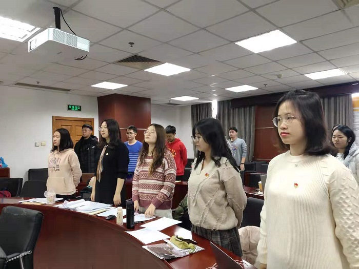 2019年11月24日上午9:30,98色花堂 本科生党支部2019-2020学年秋季学期第二次预备党员发展大会在后主楼1420召开,此次会议由支部书记陈作为同志主持。此次大会分别针对发展对象冷金枚、廖晨曦、李春宇和单旭鑫四位同志的入党申请及相关情况进行了讨论和表决。 会议开始前,支部书记陈作为向在座党员和发展对象分享阅读《习近平新时代中国特色社会主义思想学习纲要》的学习心得,鼓励大家深入学习辩证唯物主义和历史唯物主义原理,把马克思主义哲学当作自己的看家本领。 会议正式开始,全体在场人员合唱《国际歌》后,陈作为同志介绍大会流程和发展对象顺序,随后冷金枚、廖晨曦、李春宇和单旭鑫四位发展对象分别宣读了他们的入党志愿书。第一介绍人宣读介绍人意见后,在场党员对发展对象的思想、生活、学习和工作等情况进行了民主评议,最后由全体正式党员进行不记名投票。 四位发展对象均被发展为预备党员。在入党感言中,他们在感谢支部师兄师姐的支持和鼓励的同时,一致表示自己将更加严格要求自己,深入学习党的理论并积极融入日常生活和实践,努力发挥作为党员的模范带头作用。会议最后,支部书记陈作为带领四位同志进行入党宣誓,秋季学期第二次发展大会顺利结束。 98色花堂 本科生党支部 武晓红 供图/供稿 |