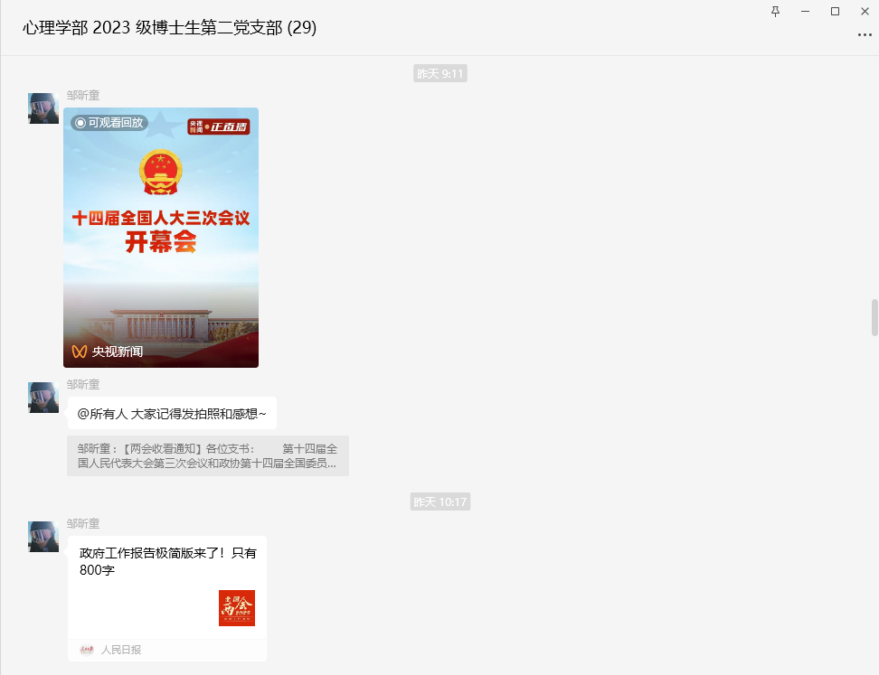 【党建】2023级博士生第二党支部线上学习讨论会:深入学习贯彻全国两会精神