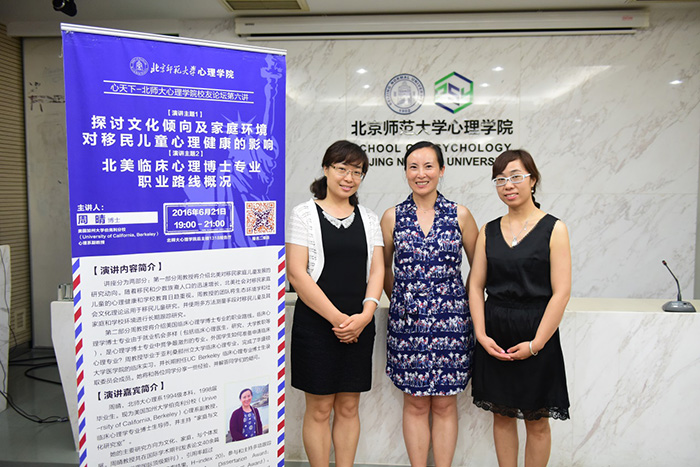 周晴博士是北师大心理系1994级本科,1998届毕业生。现为美国加州大学伯克利分校心理系副教授,临床心理学专业博士生导师,并主持“家庭与文化研究室”。她的主要研究方向为文化、家庭,与个体发展。周晴教授共在国际学术期刊发表论文40余篇(均为心理学界国际顶级期刊),引用率超过3000次,参与和主持多项跟踪研究课题; 获取过2项国家级奖励(APA, Dissertation Award;Foundation for Child Development,Young Scholars Award)。周晴教授还是多家心理学界国际顶级期刊(Child Development, Developmental Psychology;Psychological Bulletin;Journal of Educational Psychology;Journal of Psychological Assessment)的审稿人,现任两家国际期刊(Cultural Diversity and Ethnic Minority Psychology和European Journal of Developmental Psychology)的常任编委。